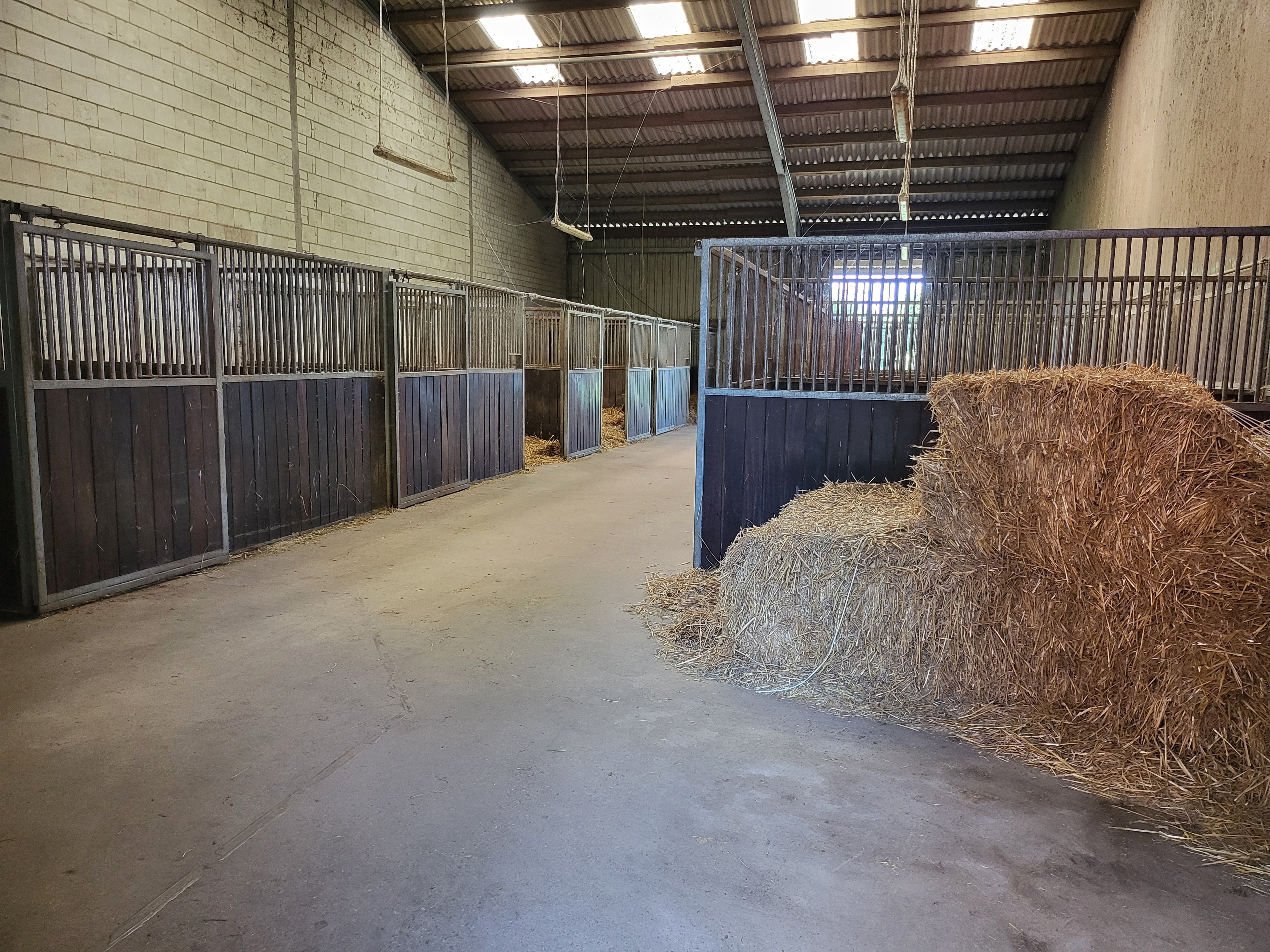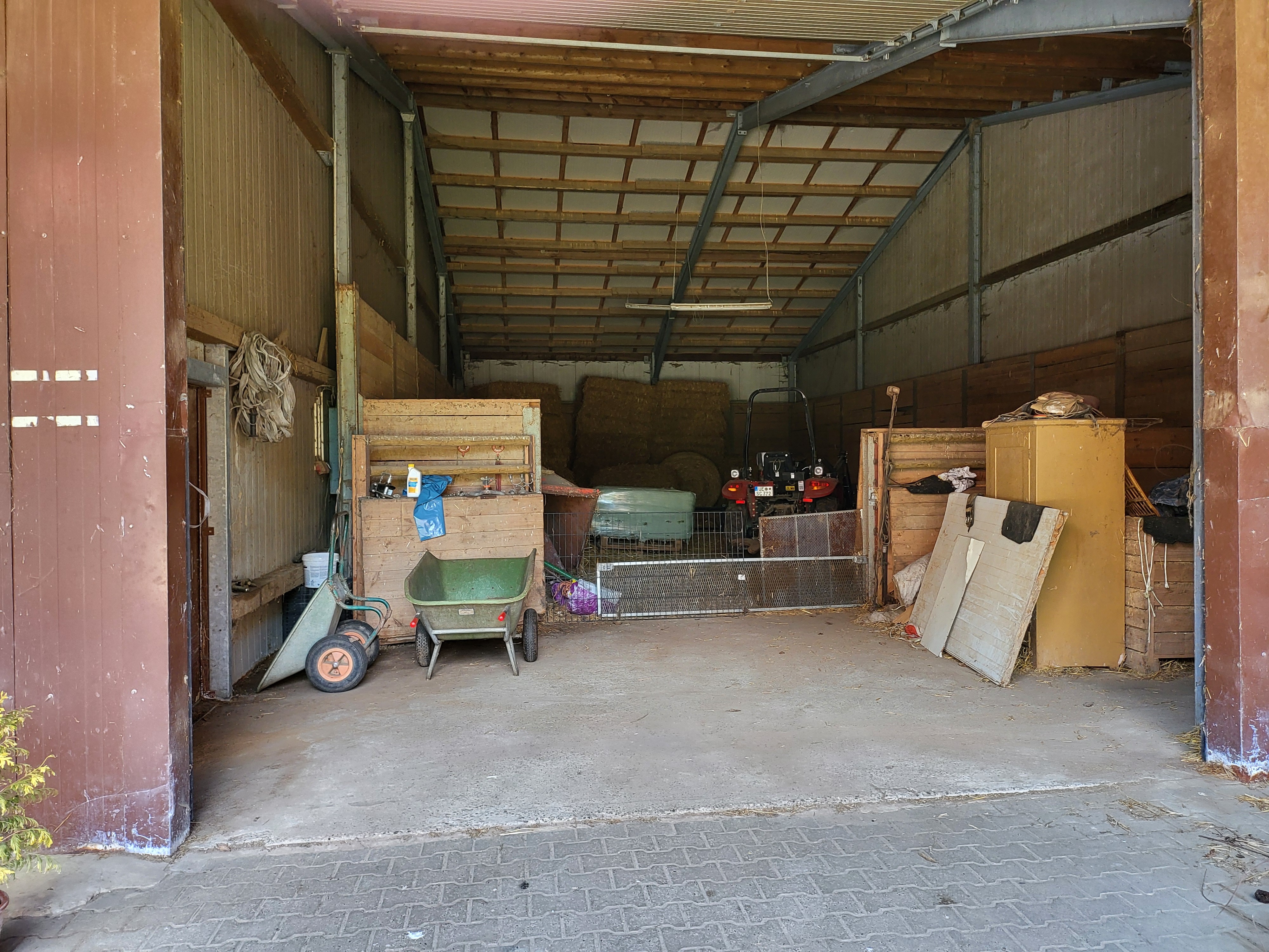 Pferdehaltung (Profi-Ausstattung): Die vorhandene Pferdehalle bietet witterungsunabhängige Trainingsmöglichkeiten. Ergänzt wird die Anlage durch zehn separate Pferdeboxen und die zugehörigen Paddocks.